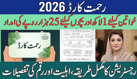 پنجاب حکومت نے 2026 میں سی ایم پنجاب رحمت کارڈ سکیم کا آغاز کیا ہے تاکہ ان بیواؤں اور یتیموں کو مالی امداد فراہم کی جا سکے جو اپنے خاندان کے اہم روٹی کمانے والے کے بعد مشکلات کا سامنا کر رہے ہیں۔ اس پروگرام کے تحت بیواؤں کو 100,000 روپے اور ہر یتیم کو 25,000 روپے ان کے گھریلو اخراجات، تعلیم اور زندگی کی ضروریات پوری کرنے کے لیے دیے جائیں گے۔ یہ سکیم ڈیجیٹل تصدیق کا استعمال کرے گی تاکہ یہ یقینی بنایا جا سکے کہ امداد مستحق لوگوں تک شفاف اور بروقت پہنچ جائے۔