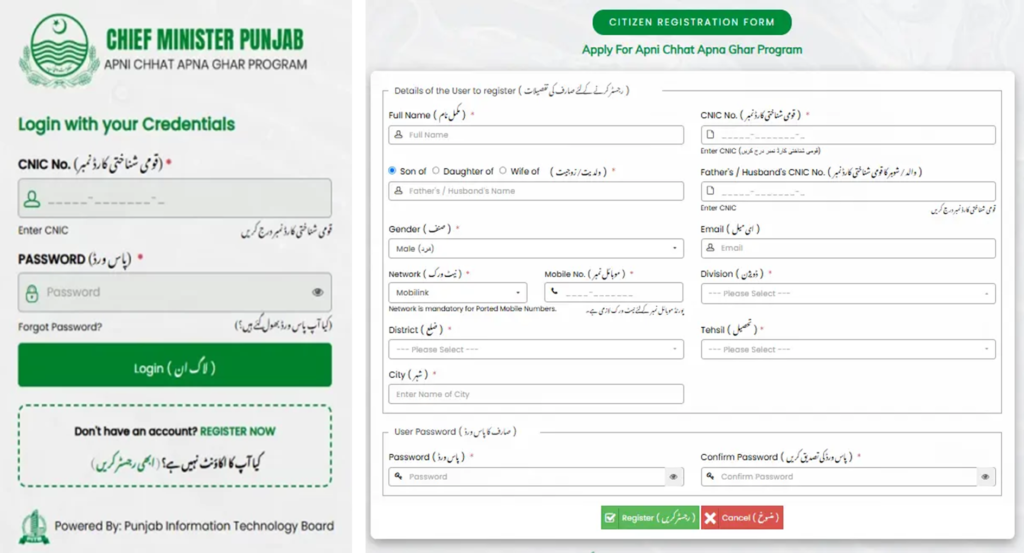 Go to the Punjab Housing Department Portal (example domain). - Click on “Apni Chat Apna Ghar Registration.”